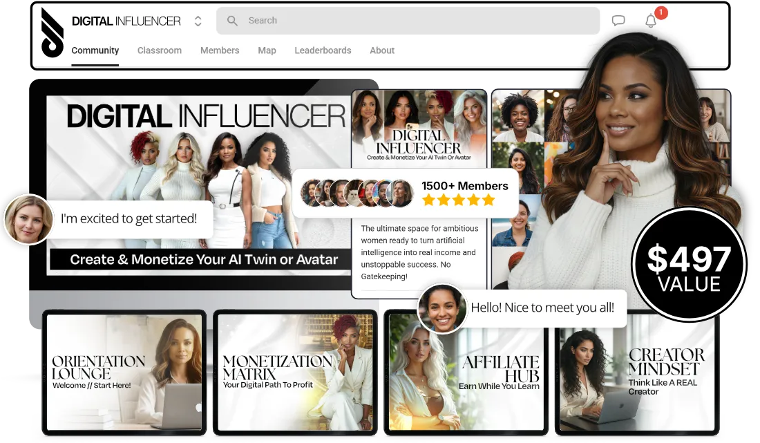 The COMMUNITY is the heart of Digital Influencer. This is your all-inclusive starting point and support system for everything you’ll build. This is where you’ll find the guidance, tools, and network that set you up for long-term success.